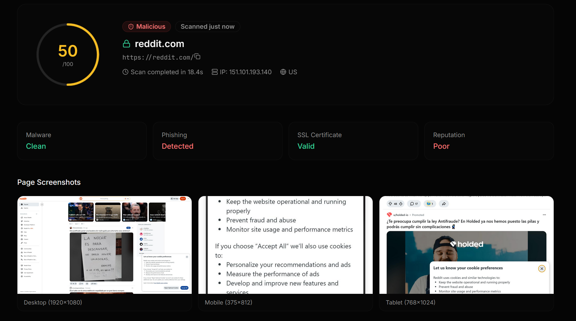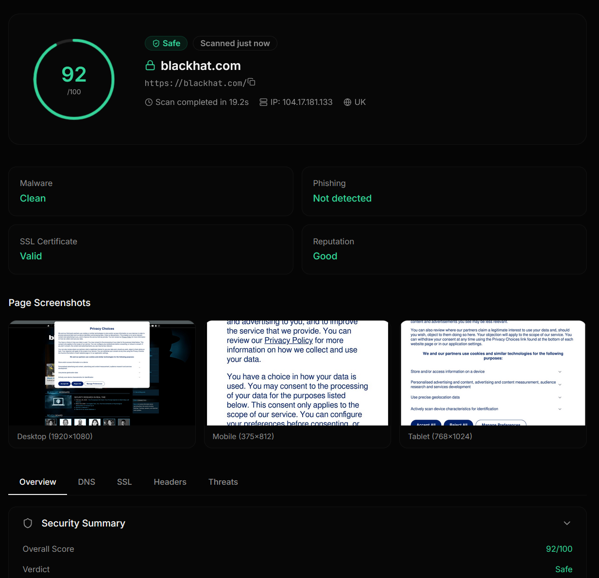 Scan any URL for threats in seconds